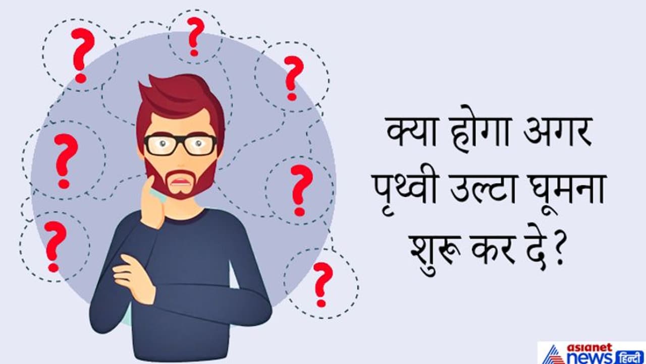 जवाब:  पृथ्वी अगर उलटी घूमती तो हवाएं भी अपना रुख बदल देंगीं। धरती का पश्चिमी भाग ठंढा और पूर्वी भाग गर्म हो जाता। सबसे बड़ा बदलाव जलवायु का होगा। आज दुनिया में कुल मिलाकर ४२० लाख किमी^ 2 वाला भाग रेगिस्तान है। अगर पृथ्वी उलटी घूमने लगे तो यह घट कर ३१० लाख किमी^ 2 हो जायेगा। हर जगह हरियाली ही दिखाई देगी।