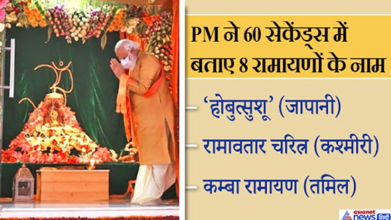 अयोध्या. Ramayana in foreign languages: प्रधानमंत्री नरेंद्र मोदी (PM Narendra Modi) अयोध्या में जहां उन्होंने राम मंदिर (Ram Mandir) शिलान्यास करके राम मंदिर निर्माण की नींव रख दी है। इस दौरान पीएम मोदी ने जनता को संबोधित भी किया। पीएम मोदी ने अपने भाषण के दौरान भगवान राम के बारे में बहुत सी अनोखी बातें भी साझा कीं। उन्होंने भगवान राम सार्वभौमिकता की बात कही और देश के कोने-कोने से लेकर विदेश तक में श्रीराम की प्रसिद्धि को विस्तार से बताया। इतना ही नहीं पीएम ने मुंहजबानी हिंदू धार्मिक ग्रंथ रामायाण (Ramayana) के क्षेत्रीय भाषाओं के नाम गिना दिए। उन्होंने विदेशी संकलनों के नाम भी बताए। पीएम मोदी ने बताया कि दुनिया भर में रामायण के हर भाषा में अनुवाद किए गए हैं। आज हम आपको पीएम मोदी के भाषण के अंश से रामायण के विदेशी भाषा के संकलनों और उनके अप्रचलित नामों के बारे में बता रहे हैं-