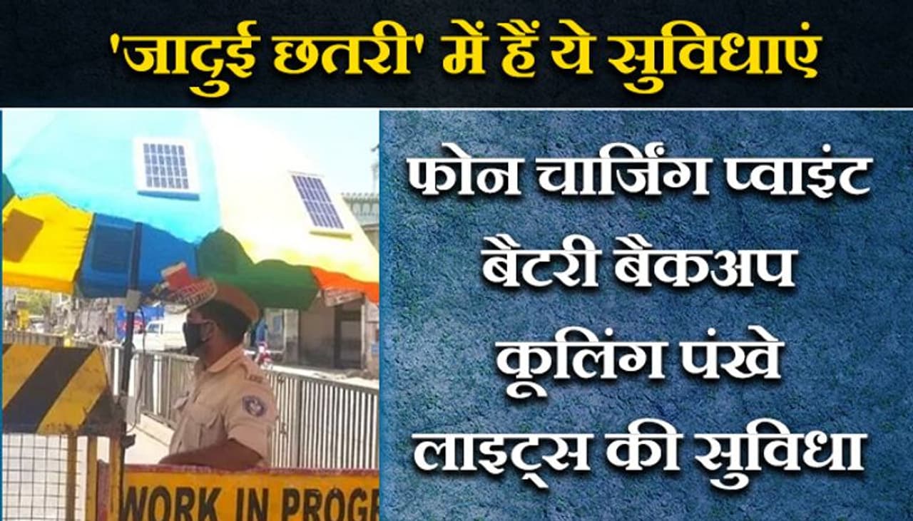 इंजीनियरिंग की पढ़ाई करने वाले 23 वर्षीय अदीब मंसूरी ने इस चिलचिलाती गर्मी में जब अपने क्षेत्र में पुलिसकर्मियों को गश्त लगाते देखा तो महसूस किया कि इसके लिए उन्हें कुछ करना चाहिए। अपने कौशल और ज्ञान का इस्तेमाल करते हुए, अदीब ने दो छतरियां डिजाइन की ये सोलर पैनल वाली हाई-टेक छतरी हैं। इस छाते में पंखा लगाया गया है और साथ ही चार्जिंग सॉकेट और 20 वॉट तक की क्षमता वाला सोलर पैनल भी है। छाते में बैटरी बैकअप भी है जिसका उपयोग रात में किया जा सकता है।