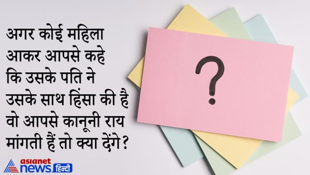 सवाल- अगर कोई महिला आकर आपसे कहे कि उसके पति ने उसके साथ हिंसा की है वो आपसे कानूनी राय मांगती हैं तो क्या देंगे?