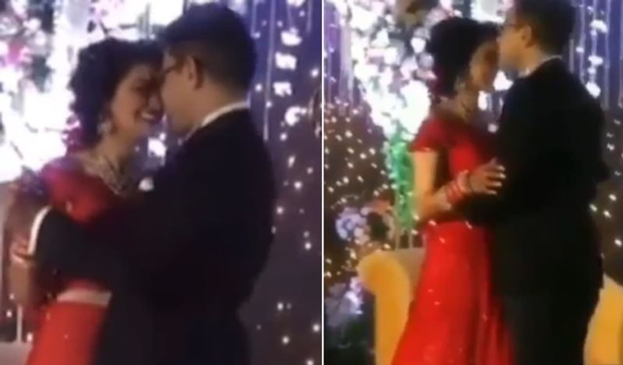 गर्लफ्रेंड बनीं पत्नी के साथ वेडिंग रिसेप्शन में डांस करते-करते रोमांटिक हुए आदित्य, किया Kiss