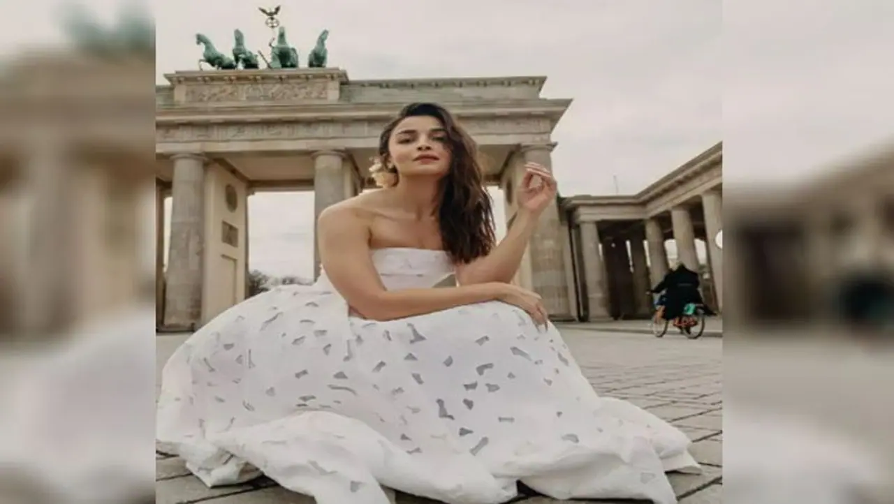 आलिया भट्ट ऑफ सोल्डर व्हाइट गाउन में बर्लिन के फेमस इमारतों के बीच पोज देती दिखाई दे रही हैं। वो इस ड्रेस में बेहद ही हसीन लग रही हैं।