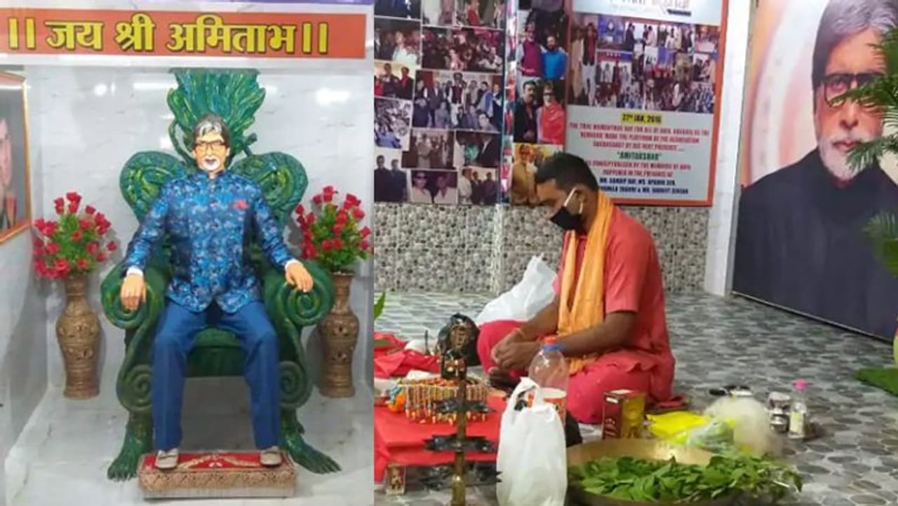 अमिताभ के मंदिर में चालीसा पढ़कर बांटे सैनिटाइजर, बच्चन धाम में 6 मिनट की आरती के बाद यूं होती है पूजा