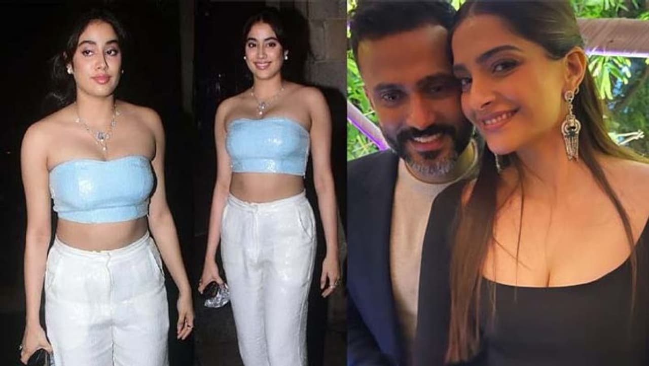 बहन की शादी की डिनर पार्टी में जाह्नवी कपूर सबसे आखिरी में पहुंची। उनका बोल्ड लुक सोशल मीडिया पर छाया हुआ है। उन्होंने इस मौके पर फोटोग्राफर्स को भी जमकर पोज दिए। वहीं, सोनम कपूर भी पति आनंद आहूजा के साथ रोमांटिक पोज देती नजर आई।