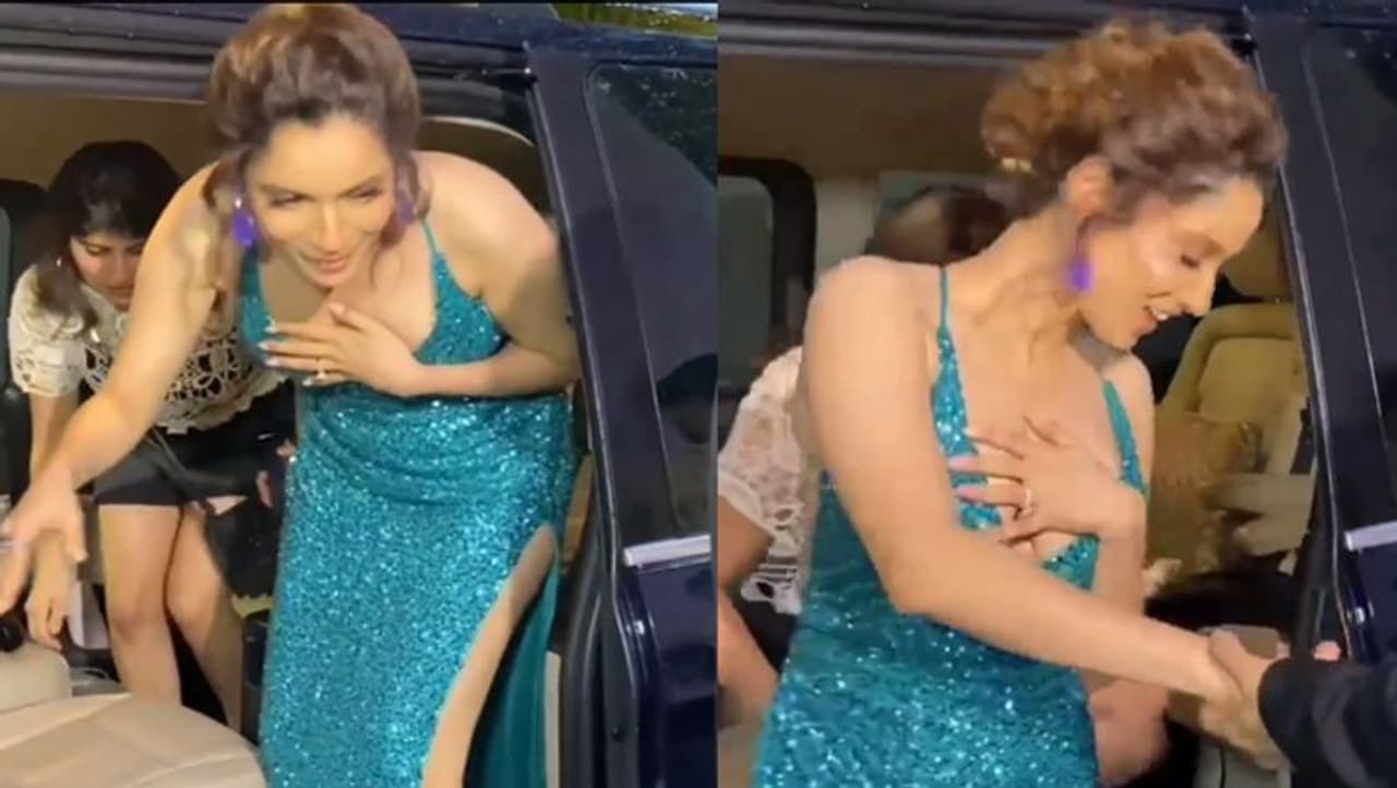 इतनी डीप नेक ड्रेस में दिखी अंकिता लोखंडे, हाथ से छुपाना पड़ा क्लीवेज तो लोगों ने सुनाई खूब खरी-खोटी
