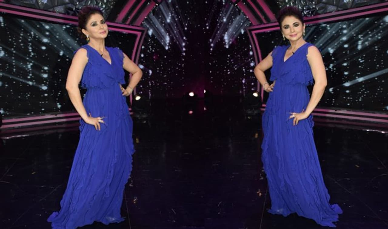 जी टीवी के सेट पर उर्मिला मातोंडकर ब्लू गाउन में दिखाई दीं। 48 साल की अदाकारा वेस्टर्न आउटफिट में हमेशा की तरह बेहद ग्लैमरस लग रही थीं।