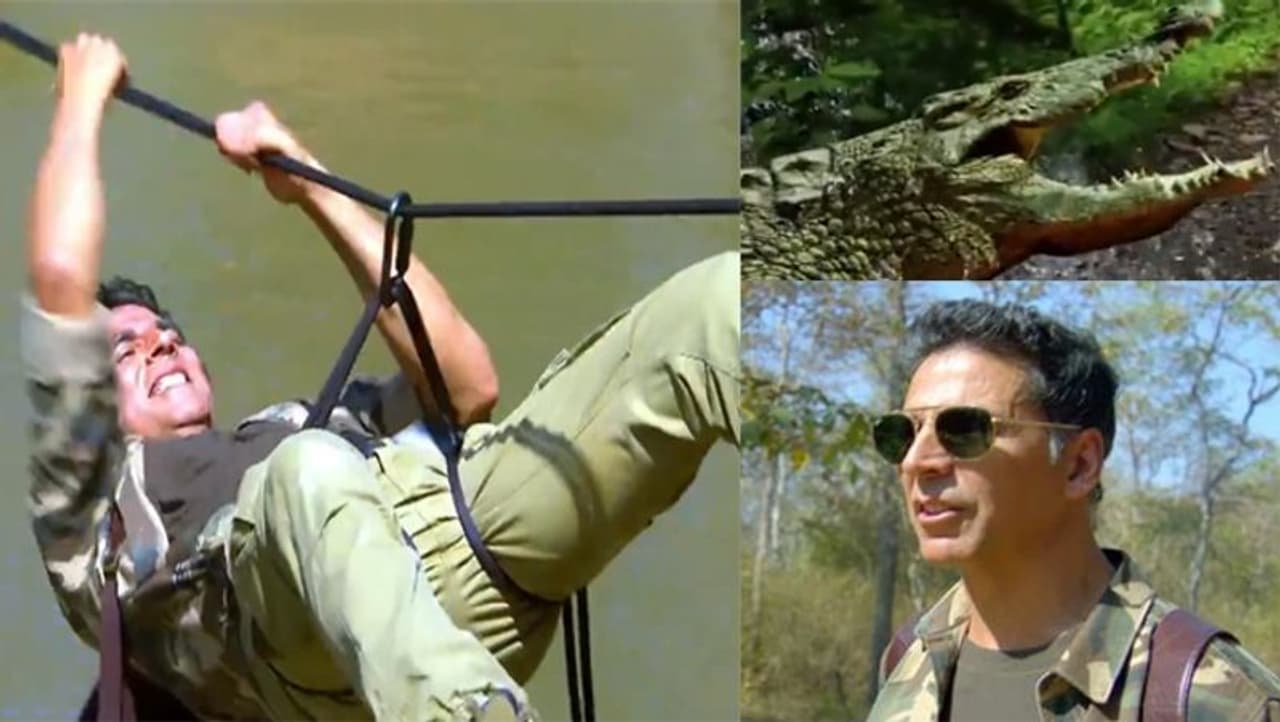 जैसे ही अक्षय रस्सी के सहारे नदी क्रास करते है वैसे ही अचानक एक मगरमच्छ मुंह फाड़े निकल आता है। मगरमच्छ को देखकर अक्षय के एक्सप्रेशन भी देखने लायक थे।