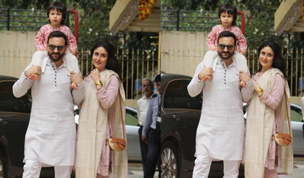 पार्टी में तीनों का ही ट्रेडिशनल लुक देखने के लिए मिला था। बेटा तैमूर ने पापा सैफ के कंधे पर बैठकर शानदार पोज भी दिए थे। इसके साथ ही करीना माथे पर बिंदी और मांग में सिंदूर फ्लॉन्ट करती नजर आई थीं।