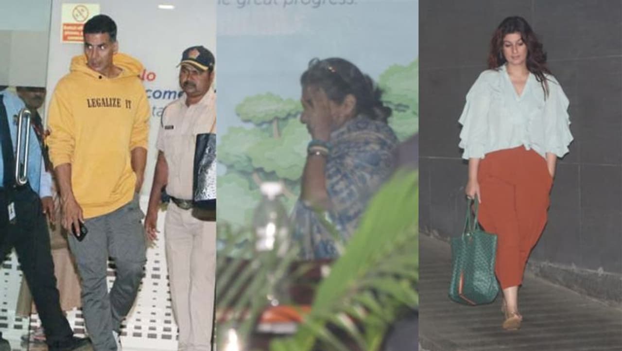 हिंदुजा अस्पताल के बाहर अक्षय कुमार, डिंपल कपाड़िया और ट्विंकल खन्ना। तीनों यहां डिंपल की मां को देखने पहुंचे थे।