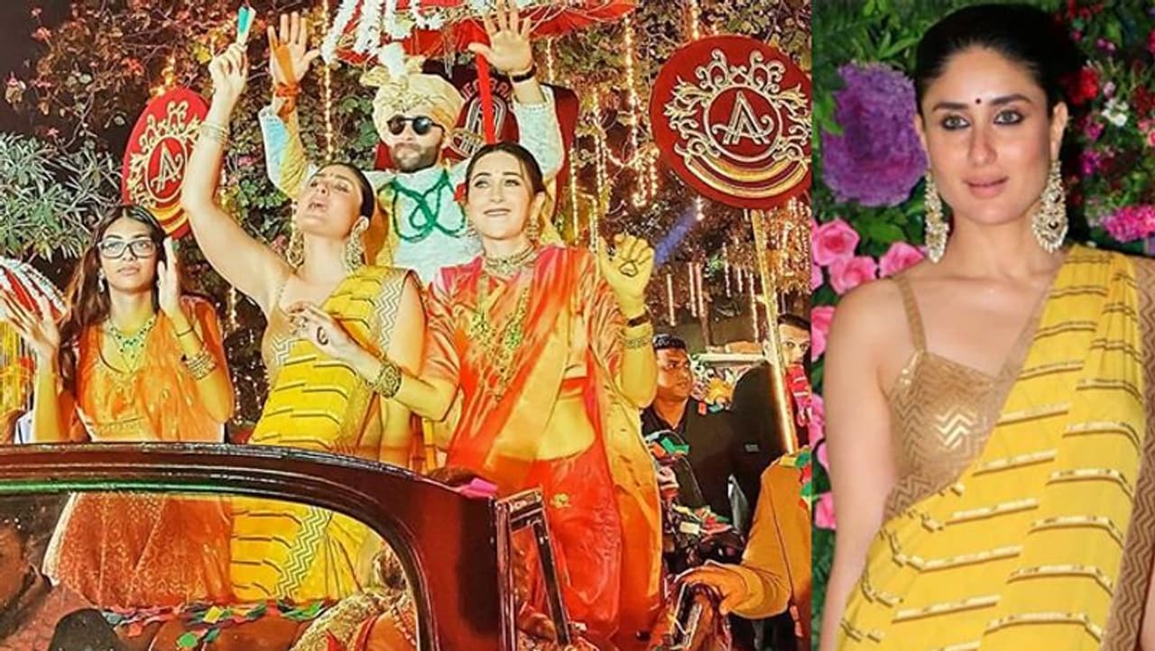 भाई अरमान जैन की शादी में यलो साड़ी में दिखा करीना कपूर का गॉर्जियस लुक।