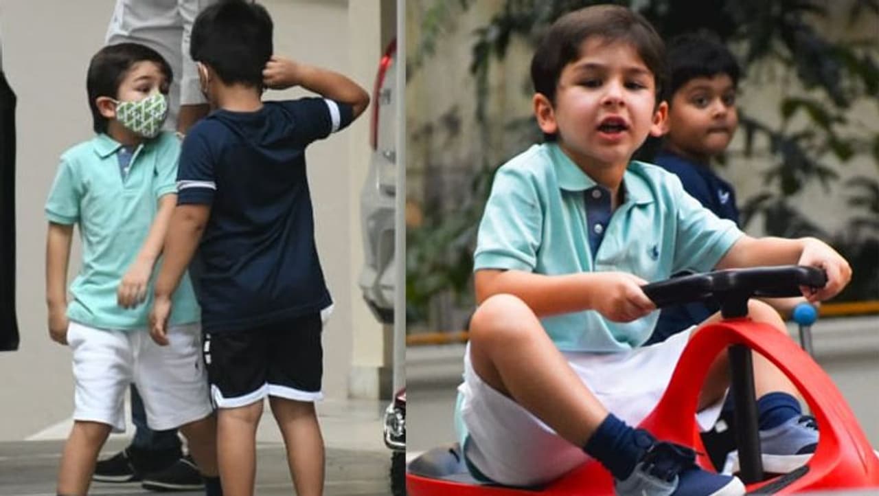 सामने आई फोटोज में तैमूर अली खान अलग-अलग तरह की गाड़ियां चलाते नजर आ रहे हैं। उन्होंने हल्के रंग की शर्ट और सफेद नैकर पहन रखी है। कभी वे मास्क लगाए तो कभी बिना मास्क के भी दिखे।