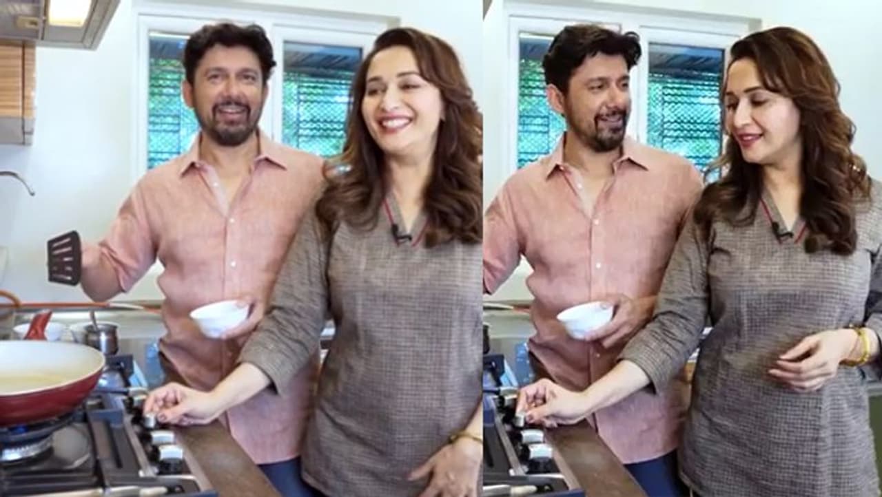 वीडियो में माधुरी और उनके पति राम नेने हैं। श्रीराम किचन में कुकिंग कर रहे हैं। वे साबुदाना खिचड़ी बना रहे हैं।