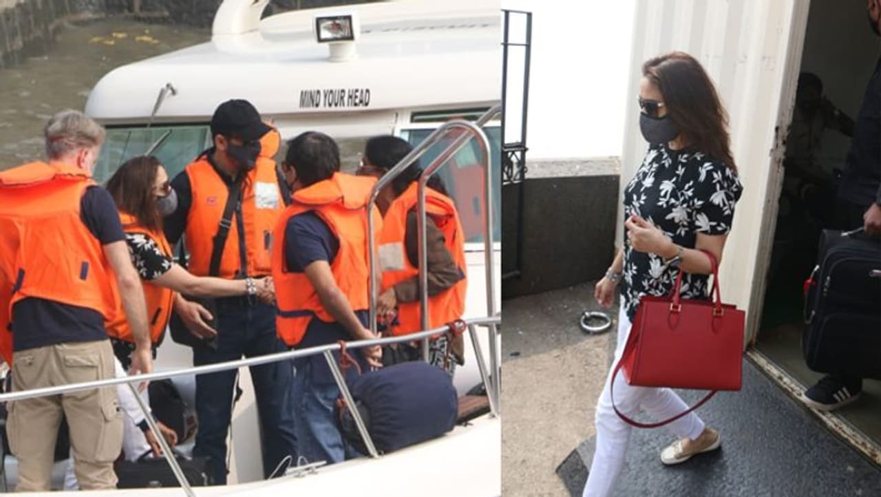 माधुरी पति के साथ गेट-वे से बोट पर सवार होकर अलीबाग के लिए रवाना हुई। इस दौरान माधुरी और श्रीराम नेने ने सेफ्टी जैकेट भी पहन रखी थी।