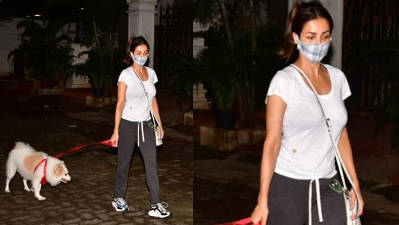 इस दौरान मलाइका के बाल बिखरे थे और उन्होंने चेहरे पर मास्क भी लगा रखा था।