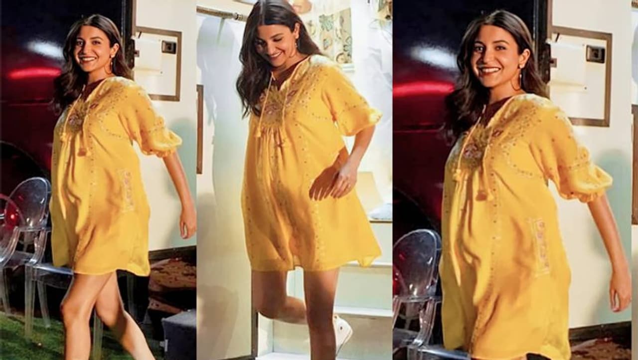 मुंबई. अनुष्का शर्मा (anushka sharma) इन दिनों जहां अपना प्रेग्नेंसी पीरियड एन्जॉय कर रही है वहीं वे डिलीवरी से पहले अपने सारे असाइनमेंट्स में निपटा रही है। बता दें कि अनुष्का की प्रेग्नेंसी का आठवां महीना चल रहा है। वे नए साल यानी जनवरी में अपने पहले बच्चे को जन्म देगी। पति विराट कोहली (virat kohli) के साथ दुबई में लंबा वक्त बिताने के बाद मुंबई लौटते ही वे काम करने लगी है। रिपोर्ट्स की मानें तो अनुष्का कमर्शियल शूट कर रही है। हाल ही में उनके ऐड शूट की कुछ फोटोज सामने आई है, जिसमें वे बेहद खुश नजर आ रही है। उनकी ये फोटोज सोशल मीडिया पर तेजी से वायरल हो रही है। सामने आई फोटोज में अनुष्का छोटी पीले रंग के ड्रेस में खिलखिलाकर हंसती नजर आ रही है। उनके बाल खुले हैं और उन्होंने जूते पहन रखे हैं। हालांकि, उनकी एक गलती की वजह से सोशल मीडिया पर यूजर्स उन्हें लताड़ भी लगा रहे हैं।
