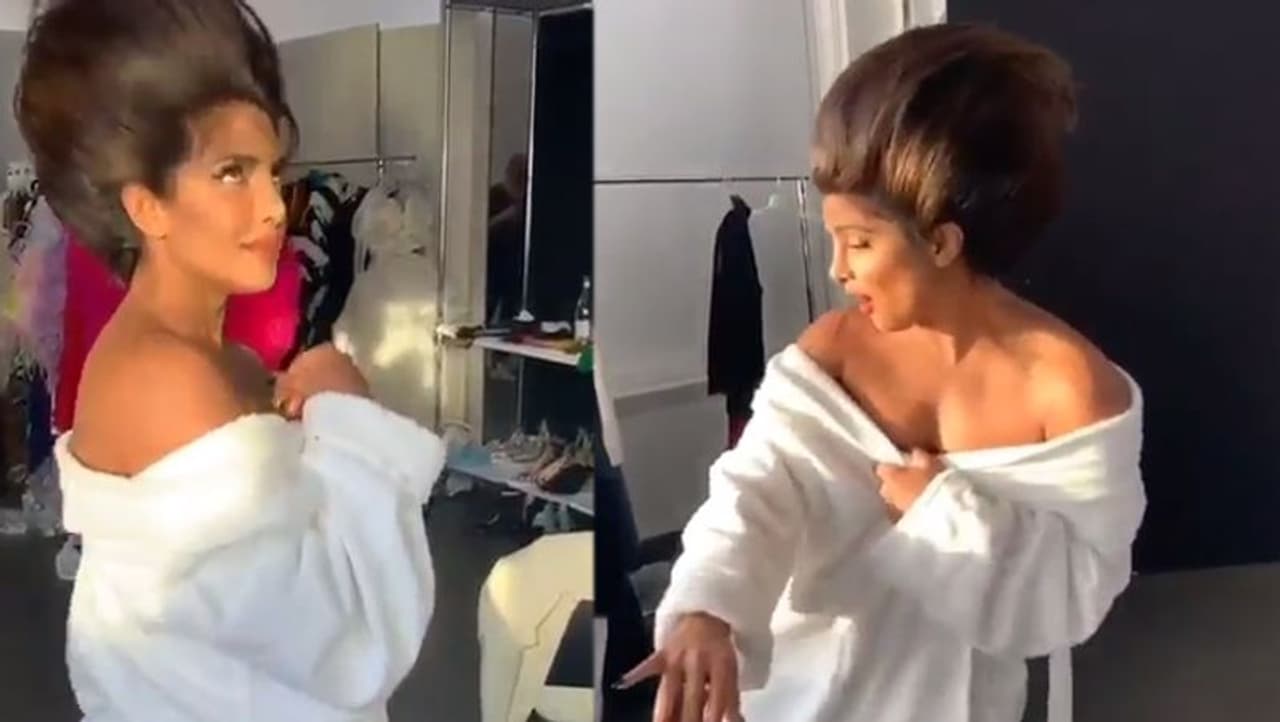 प्रियंका बाथरोब पहने अपनी हेयरस्टाइल को खूब एन्जॉय करती दिख रही हैं। उन्होंने वीडियो पर कैप्शन लिखा- "वीकेंड पर डांस। हमेशा कुछ न कुछ होता ही है।"