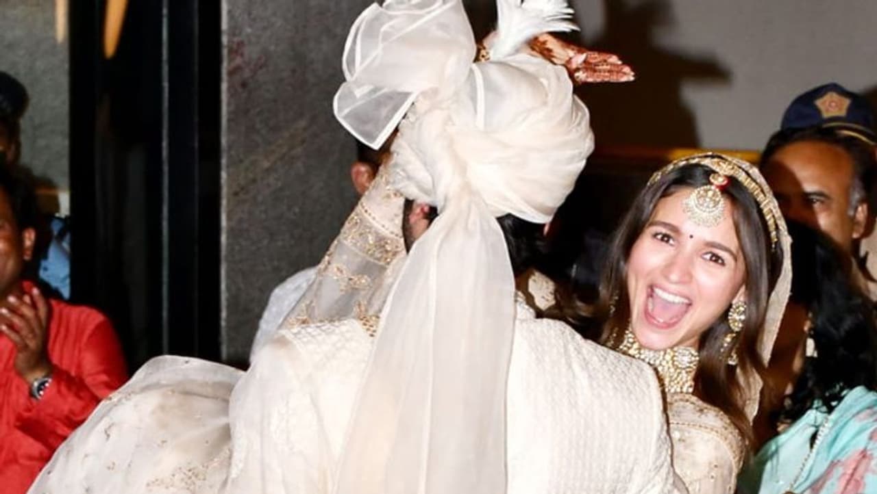 रणबीर कपूर ने आलिया भट्ट को गोद में उठाया, शरमा गई दुल्हन-देखें तस्वीरें...