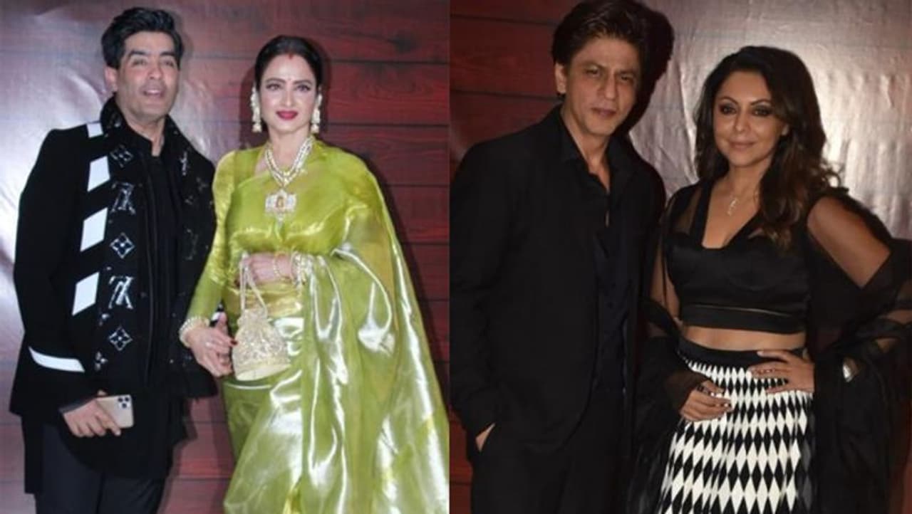 पार्टी में इस शख्स का हाथ थामे नजर आई 65 साल की रेखा, मैचिंग कलर की ड्रेस में दिखे शाहरुख और गौरी