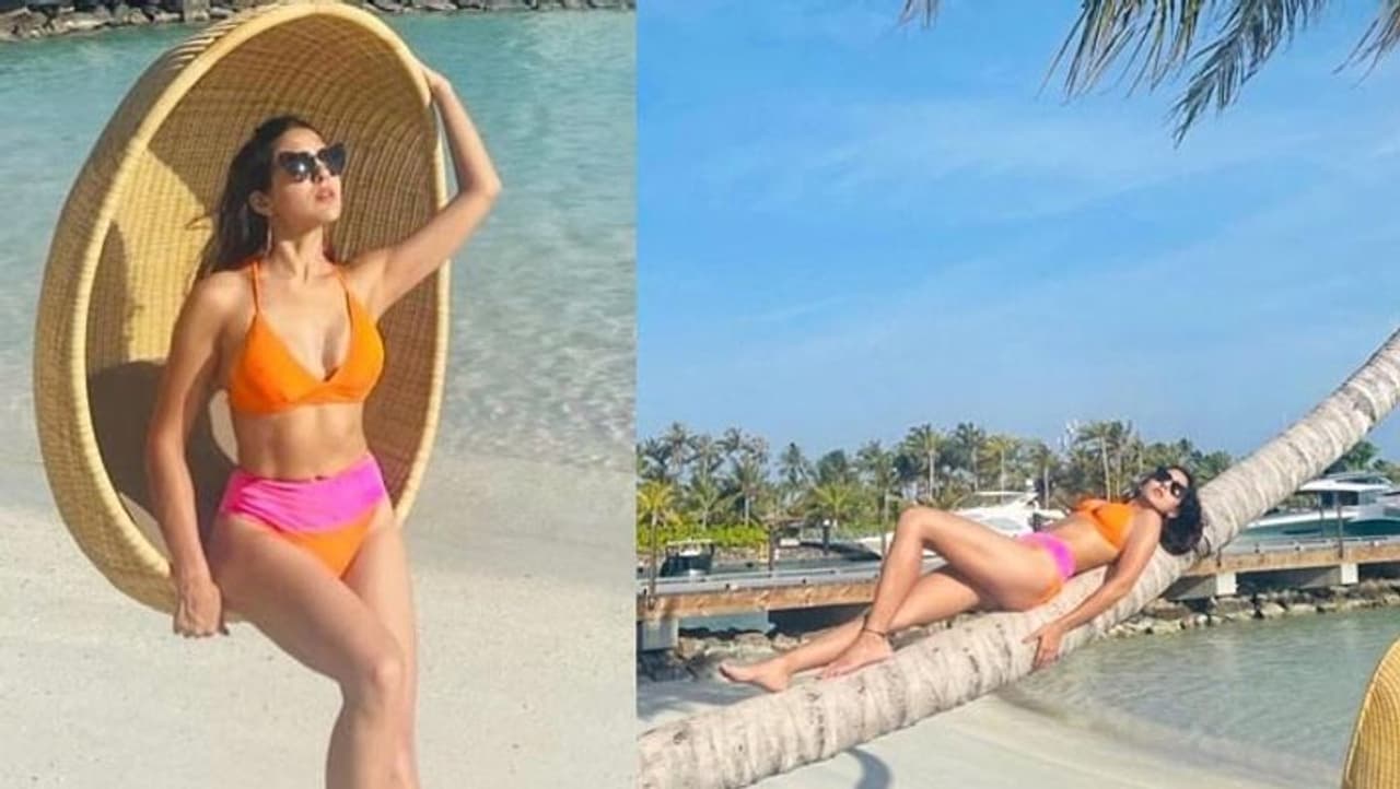 गुलाबी-नारंगी बिकिनी पहन पेड़ पर लेटी दिखी सैफ अली खान की बेटी, मालदीव के समुंदर किनारे दिखाई ऐसी अदाएं