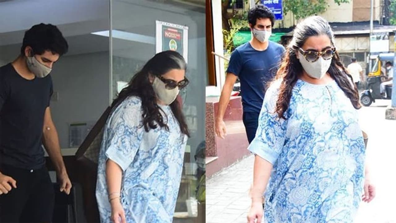 मां-बेटे दोनों ही एक क्लिनिक के बाहर स्पॉट हुए। इस मौके पर अमृता ने बहुत ही ढीला कुर्ता और पैंट कैरी कर रखा था।