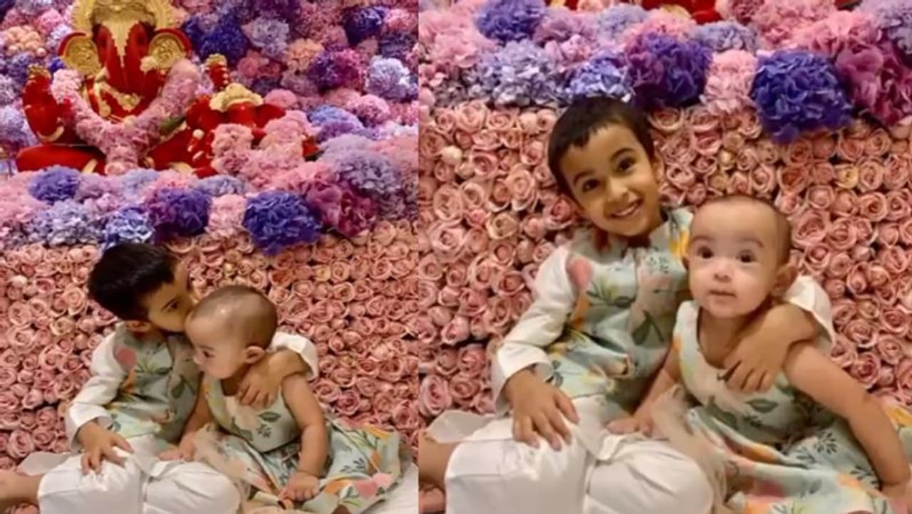 दोनों भाई-बहन बप्पा के पास बैठकर बेहद खुश नजर आए।