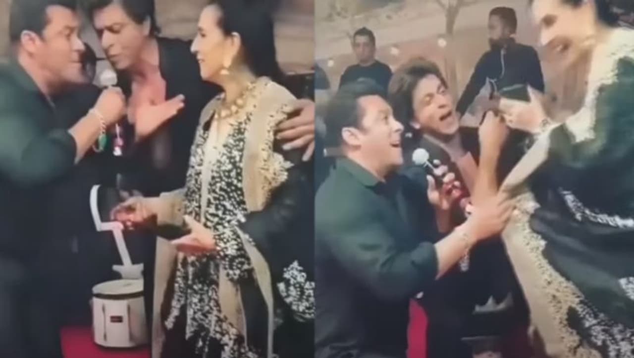 सलमान खान और शाहरुख खान, सोनम कपूर की मॉम सुनीता कपूर के साथ मस्ती-मजाक करते नजर आए थे। दोनों ने सुनीता को घेर लिया था और अपनी फिल्म 'करन-अर्जुन'' का गाना 'ममता के मंदिर की है तू सबसे प्यारी मूरत..' गाया था।