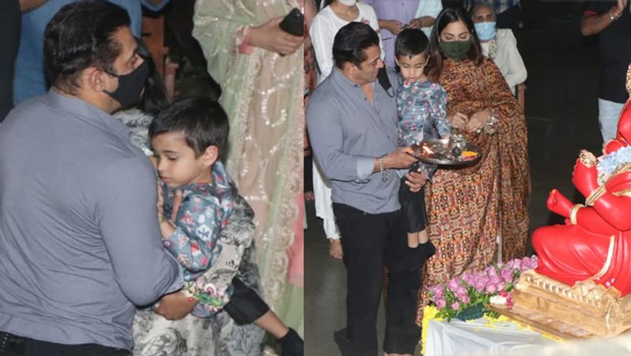 अचानक उखड़ गया सलमान के भांजे का मूड तो मामा ने गोद में लेकर यूं करवाई बप्पा की आरती, PHOTOS