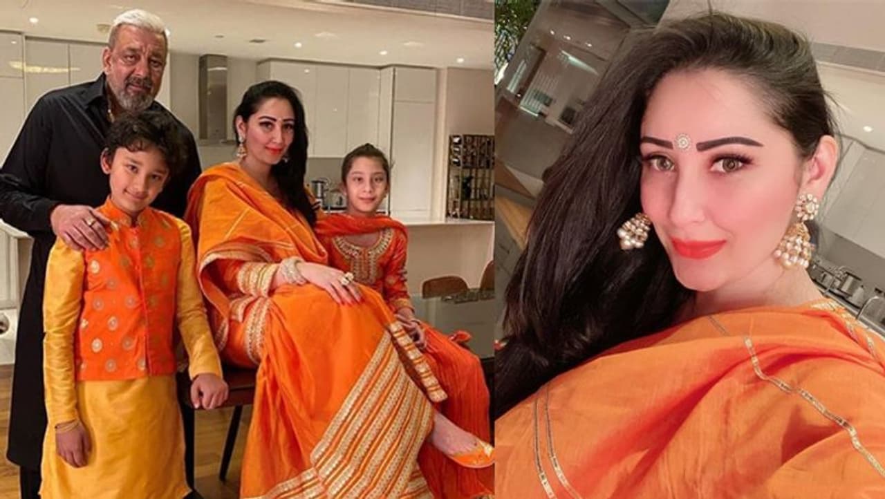 मान्यता ने इस दौरान ऑरेंड कलर का शरारा पहना था, जिसमें वे बहुत सुंदर लग रही थी। साथ ही उन्होंने अपने दोनों बच्चों को भी मैचिंग ड्रेस पहनाई थी।