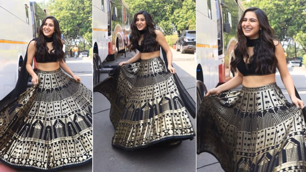 काला-चमकीला लहंगा पहन खूब इतराई Sara Ali Khan, गोल-गोल घूमकर दिए इस तरह पोज, ये सेलेब्स भी दिखें