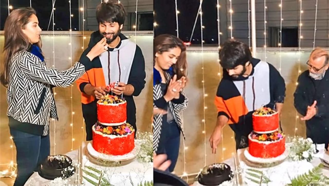 शाहिद कपूर काट रहे थे केक तो बड़े प्यार से निहारती दिखीं पत्नी मीरा, पापा पंकज कपूर भी थे मौजूद