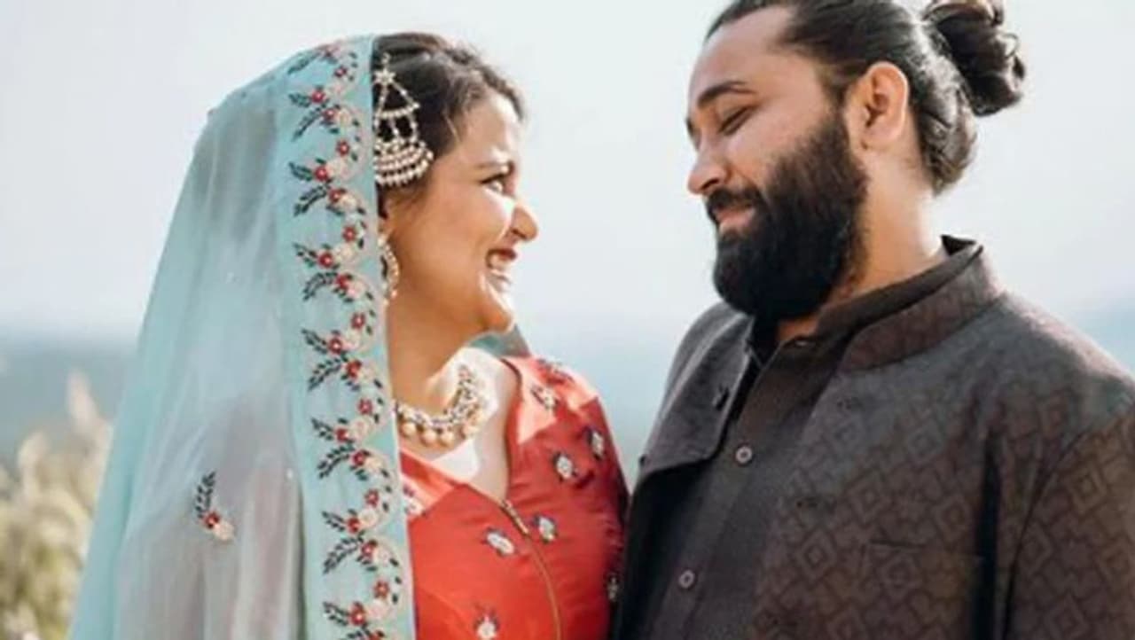 सना ने दुल्हन ड्रेस को बेहद ही सिंपल रखा। उन्होंने स्काई कलर के लहंगा और दुपट्टा के साथ रेड कलर का ब्लाउज पहना था। उन्होंने मेकअप भी बहुत कम कर रखा था। वो काफी एलिगेंट लग रही थीं। वहीं, मयंक पाहवा ने ब्लैक कलर का पठानी कुर्ता-पायजामा पहना था।