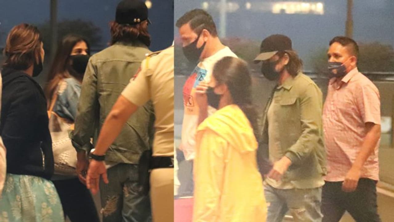 शाहरुख को उनके आउटफिट में पहचान पाना मुश्किल था। उन्होंने डेनिम जीन्स के साथ व्हाइट टी-शर्ट और ओलिव ग्रीन कलर की जैकेट पहनी हुई थी। उन्होंने भी ब्लैक मास्क और सिर पर कैप पहन अपना चेहरा पूरी तरह से छुपा रखा था।