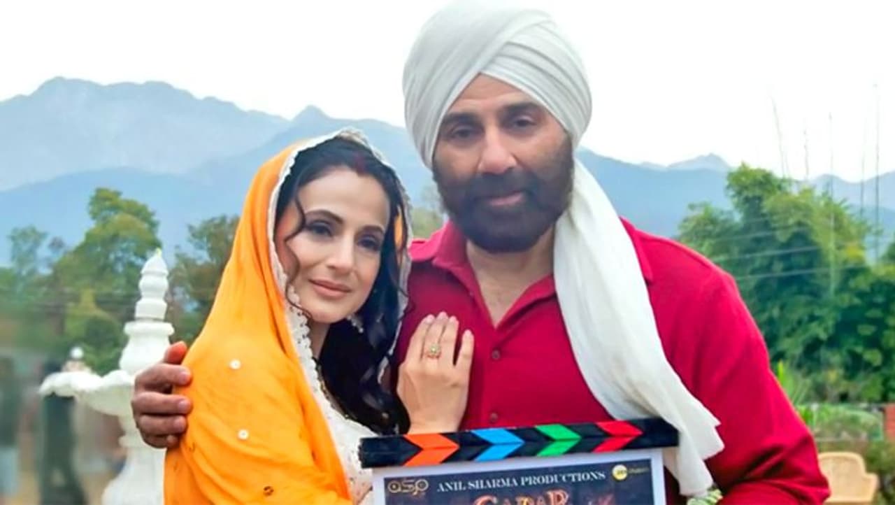 फिल्म के सेट पर अमीषा पटेल (Ameesha Patel) सफेद सूट के साथ पीले दुपट्टे में नजर आ रही हैं। वहीं उनके नजदीक बैठे सनी देओल (Sunny Deol) महरून कुर्ते के साथ सफेद पायजामे और मैचिंग पगड़ी में दिख हरे हैं।