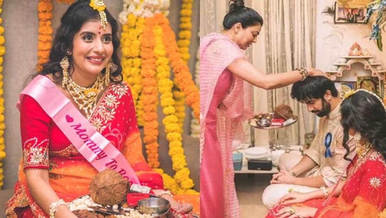 गोद भराई में दुल्हन की तरह नजर आई सुष्मिता सेन की भाभी, लाल साड़ी और फूलों के गहनों में दिखी खूबसूरत