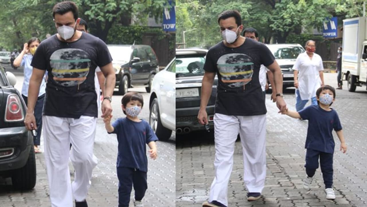 पापा का हाथ थामे घूम रहे थे तैमूर पर ध्यान था कहीं और, फिर यूं खींचकर बेटे को ले गए सैफ अली खान