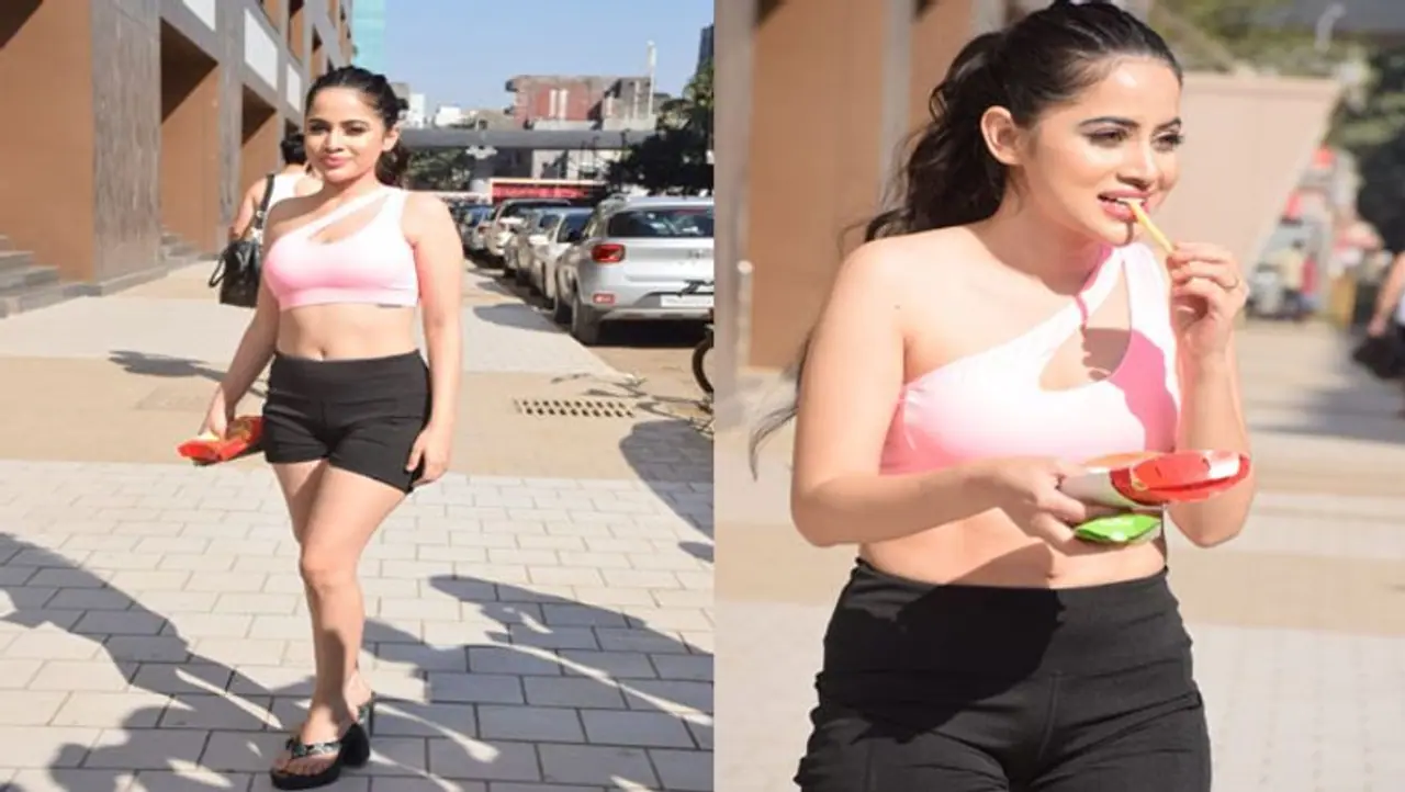 स्पोर्ट्स ब्रा-शॉर्ट्स में दिखीं उर्फी जावेद,वन सोल्डर स्पोर्ट्स ब्रा में वो बेहद खूबसूरत लग रही थी।इसके साथ सिंपल ब्लैक स्लिपर उन्होंने पहन रखा था।