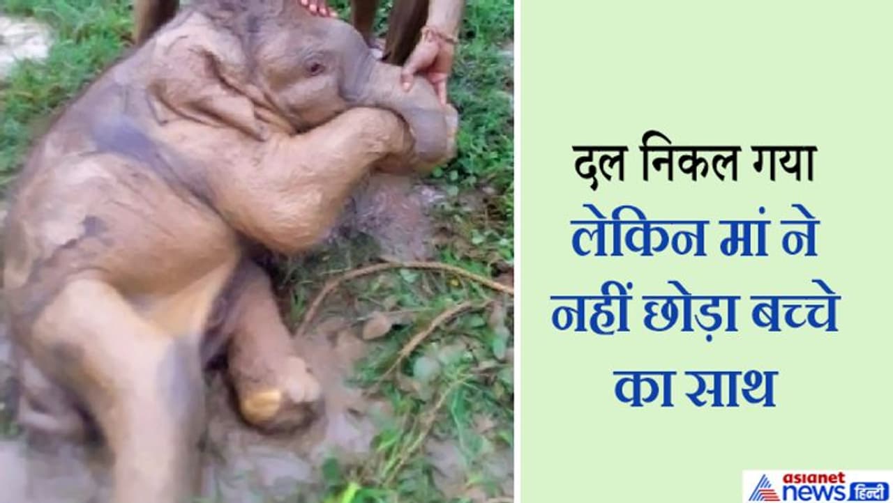 - 20 हाथियों का दल बच्चे को दलदल में फंसा देखकर आगे बढ़ गया, लेकिन 'मां' रातभर उसे निकालने की कोशिश करती रही