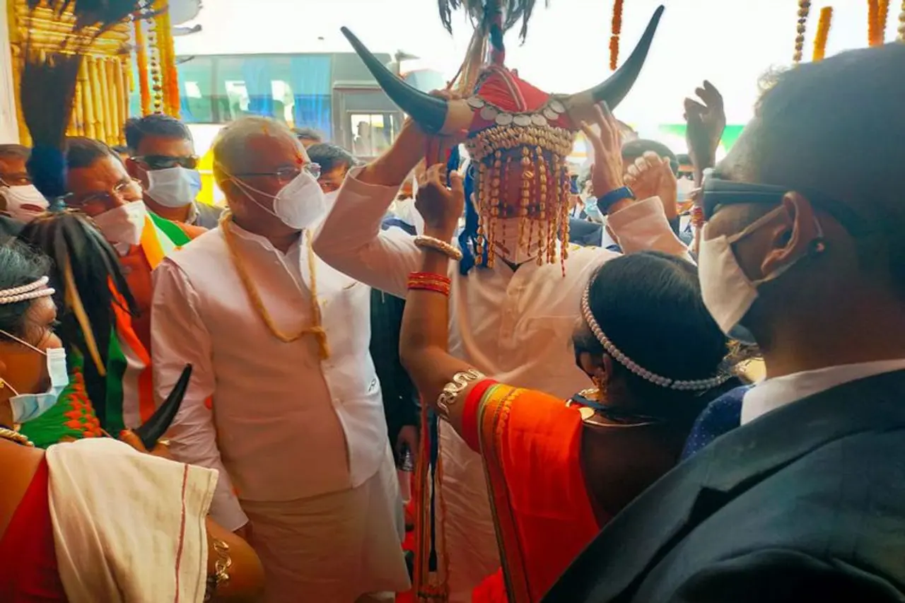 साइंस कॉलेज में स्थानीय कलाकारों ने राहुल गांधी का तिलक लगाया और उन्हें गौर मुकुट पहनाकर स्वागत किया। इस दौरान राहुल छत्तीसगढ़ी रंग में रंगे नजर आएं। राहुल गांधी ने मुख्यमंत्री भूपेश बघेल के साथ प्रदर्शनी भी देखी।