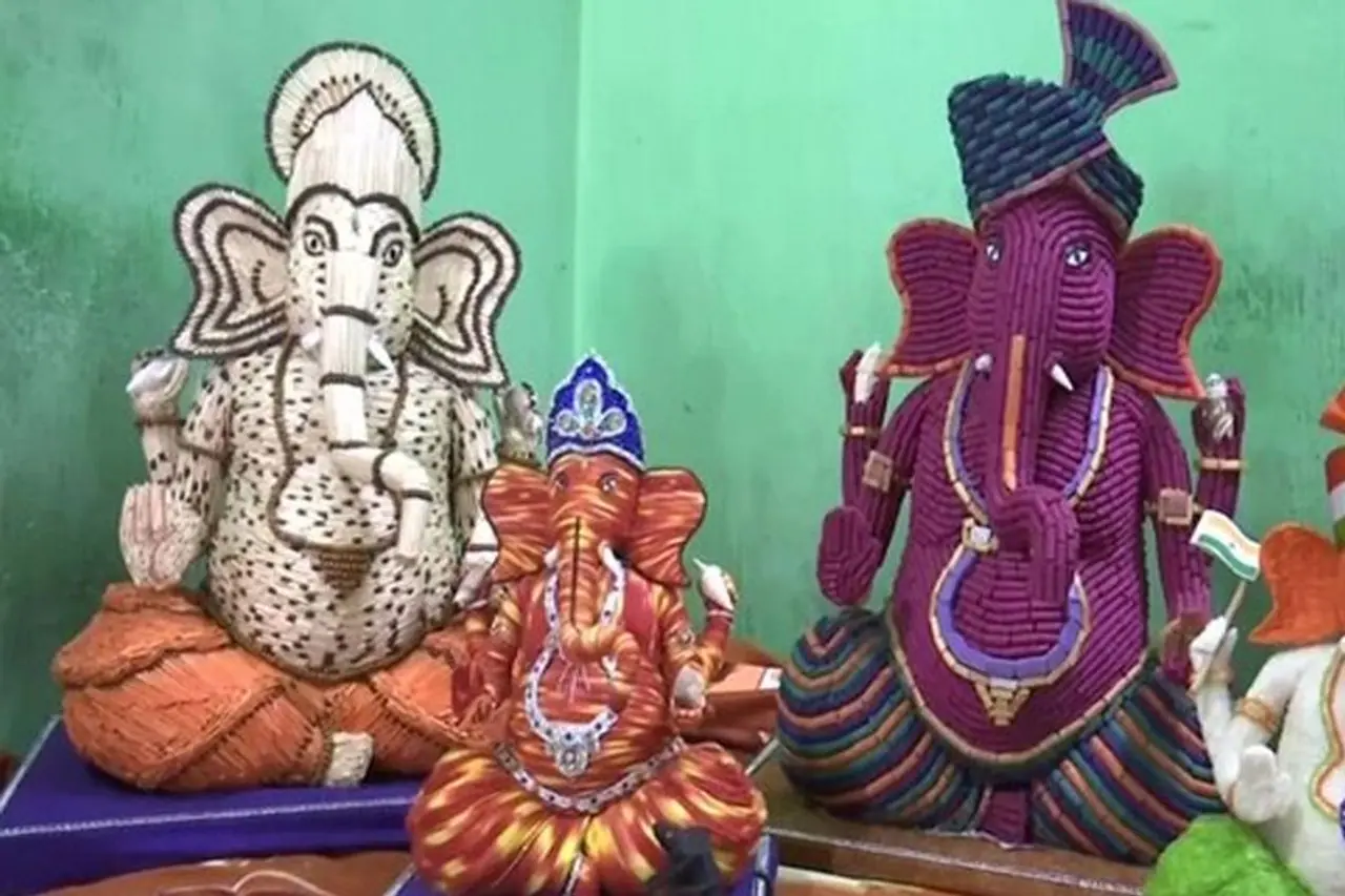 कहीं धान से तो कहीं माचिस से बनाई गई मूर्तियां, गणेश चतुर्थी में देखें इको फ्रेंडली प्रतिमाएं