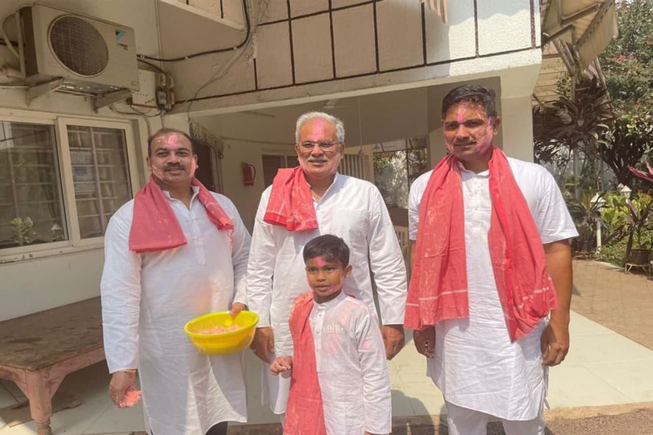 मुख्यमंत्री भूपेश बघेल ने अपने गृह नगर भिलाई में परिवार के साथ रंगों का त्योहार मनाया। सीएम भूपेश और उनकी पत्नी ने एक-दूसरे को रंग लगाया और गुलाल उड़ाया। इस दौरान सीएम के परिवार के अन्य सदस्यों ने भी बारी-बारी से अबीर लगाकर इस त्योहार को मनाया।
