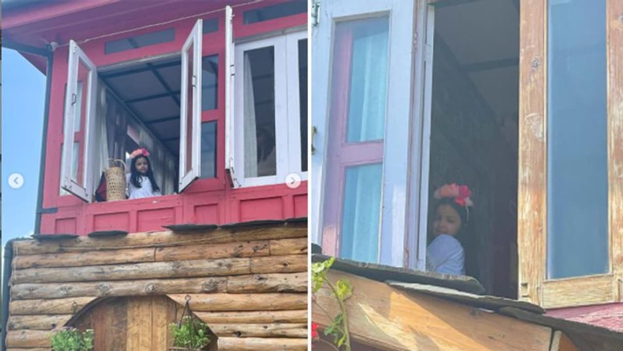 इस फोटो में जीवा बिलकुल हिमाचली बच्ची की तरह जूट का बैग उठाए कहीं जाती हुई नजर आ रही है। ऊपर नीला आसमान और पीछे हरियाली इस फोटो को परफेक्ट बना रही है।