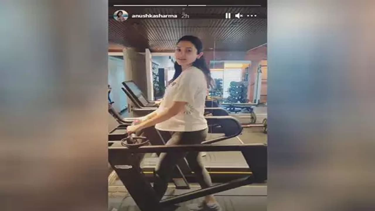इस क्यूट फोटो के साथ ही अनुष्का ने ट्रेडमिल पर वर्कआउट करते हुए खुद का एक बूमरैंग वीडियो शेयर किया है। जिसमें वह सफेद रंग की टी-शर्ट और काले रंग की पेंट पहने, जिम में पसीना बहाते हुए नजर आ रही है।