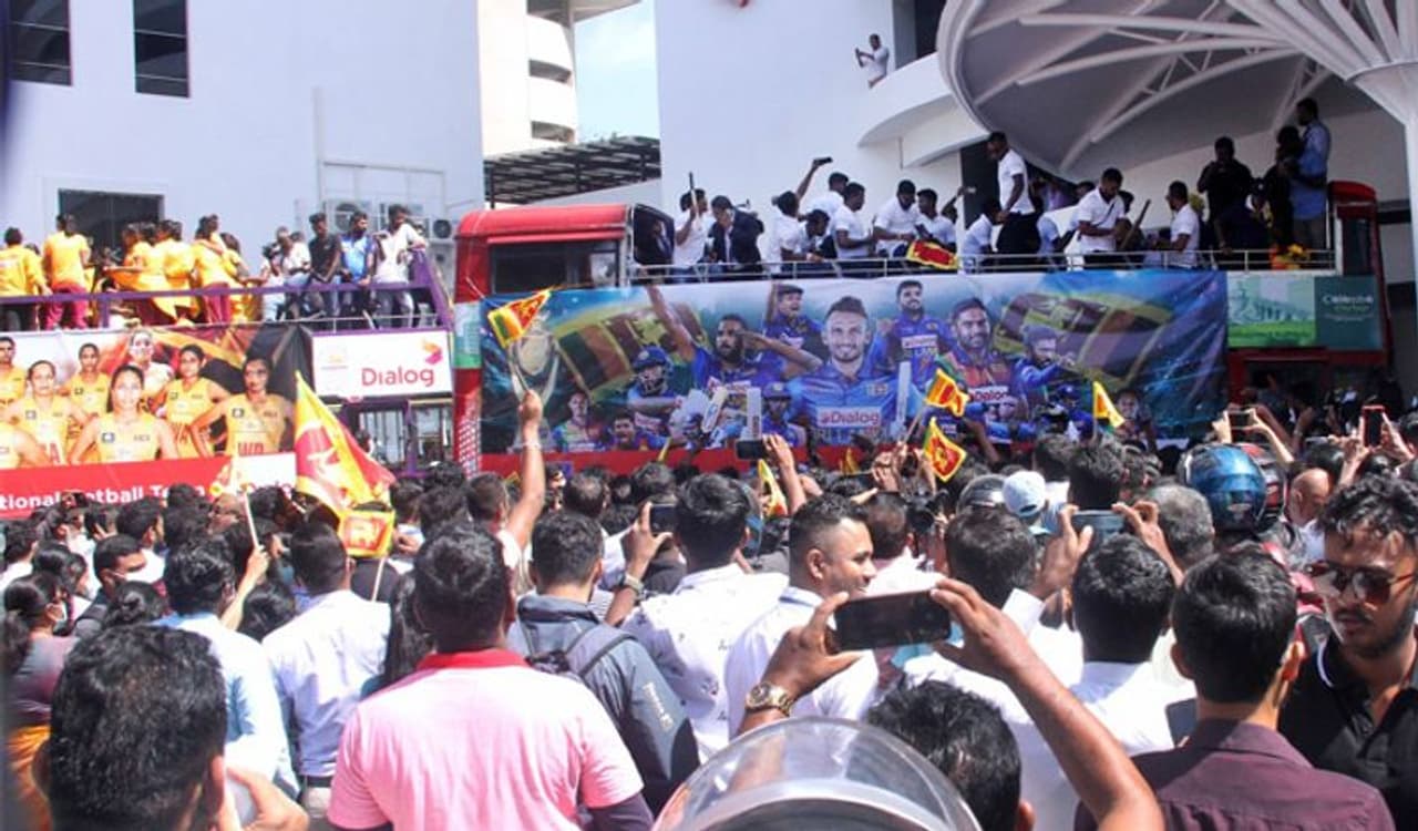 अपने देश में अभूतपूर्व स्वागत(grand reception) की ये तस्वीरें श्रीलंका क्रिकेट ने खुद ट्विटर पर शेयर की हैं। फोटो क्रेडिट-संजीव लसंथा