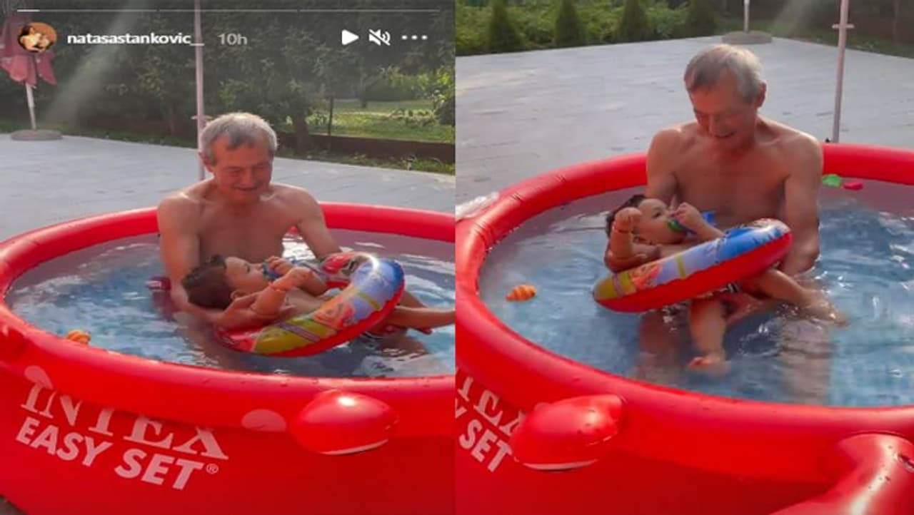 नताशा ने सोमवार को अपनी इंस्टा स्टोरी पर कुछ तस्वीरें शेयर की। जिसमें उनका बेटे अगस्त्य अपने नाना के साथ बेबी पूल में नहाता हुआ नजर आ रहा है। वहीं, नताशा के पिता अपने नाती को पकड़े हुए दिख रहे हैं।