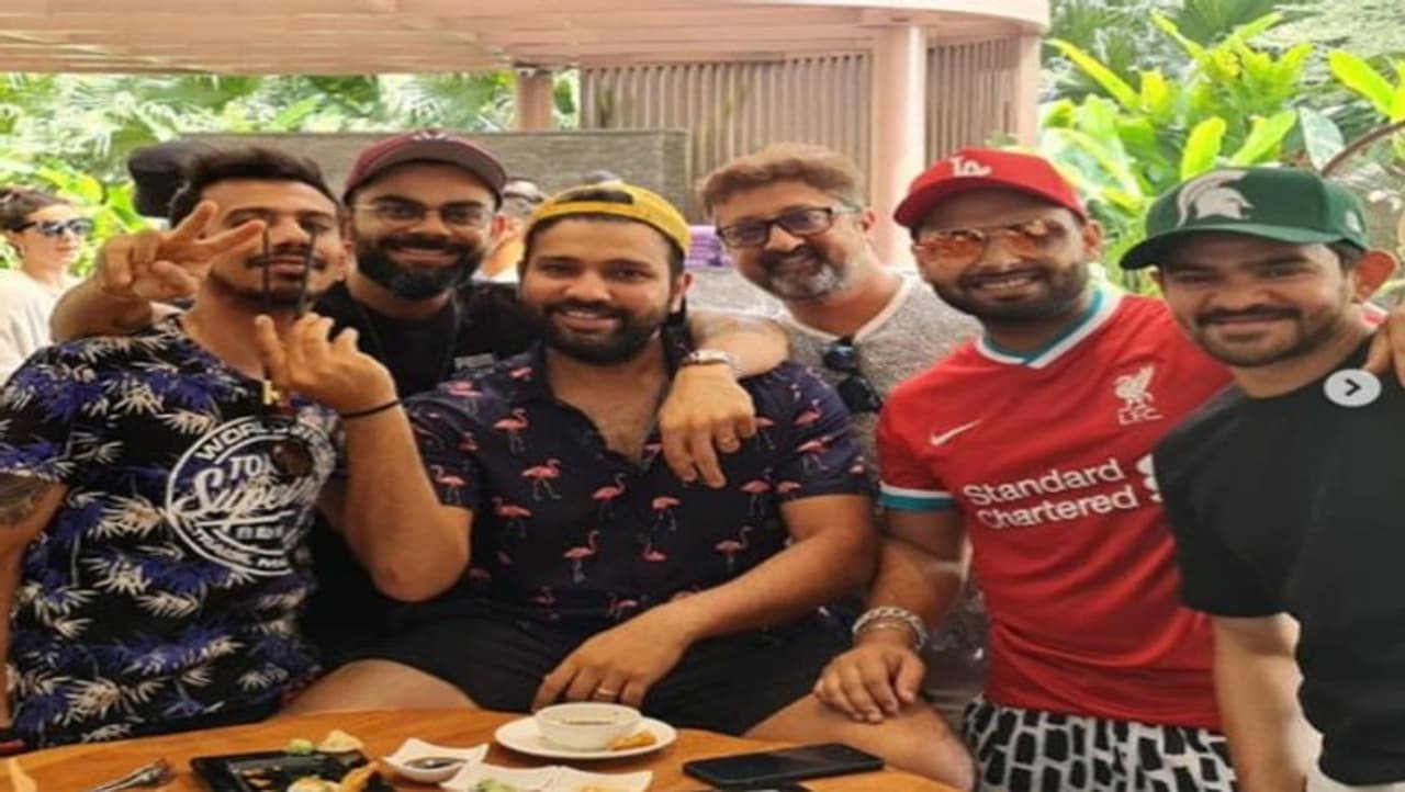 इस फोटो में युजवेंद्र के साथ ही रोहित शर्मा, हार्दिक पंड्या, ऋषभ पंत, शार्दुल ठाकुर, विराट कोहली और टीम के हैड कोच रवि शास्त्री भी नजर आ रहे हैं।