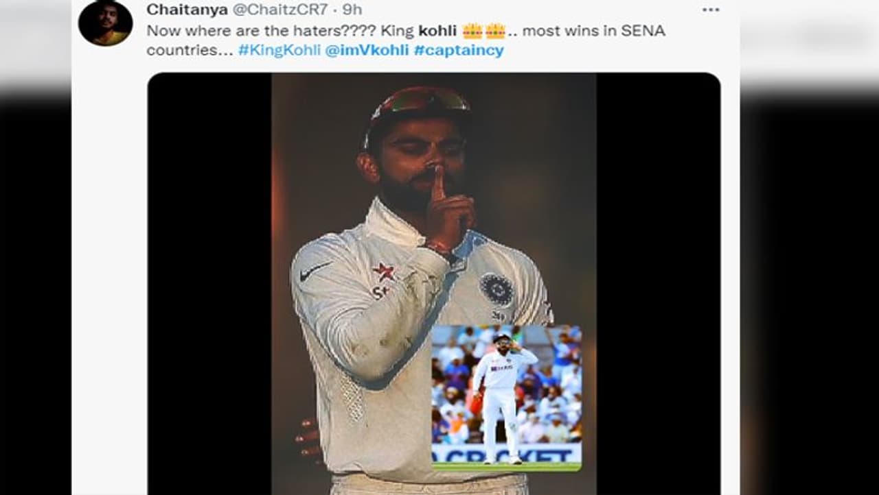 वहीं, एक यूजर ने लिखा- आइए कप्तानी के बारे में बात करते हैं इस टेस्ट में मिली तमाम आलोचनाओं के बाद उन्होंने शानदार नेतृत्व किया.. बदलाव अच्छे थे, योजना शानदार थी, फील्ड प्लेसमेंट सटीक थे। नई गेंद को लेट करने से भी काम हुआ। आपने उनकी (विराट कोहली) बहुत आलोचना की है लेकिन वह आदमी अब प्रशंसा का पात्र है।