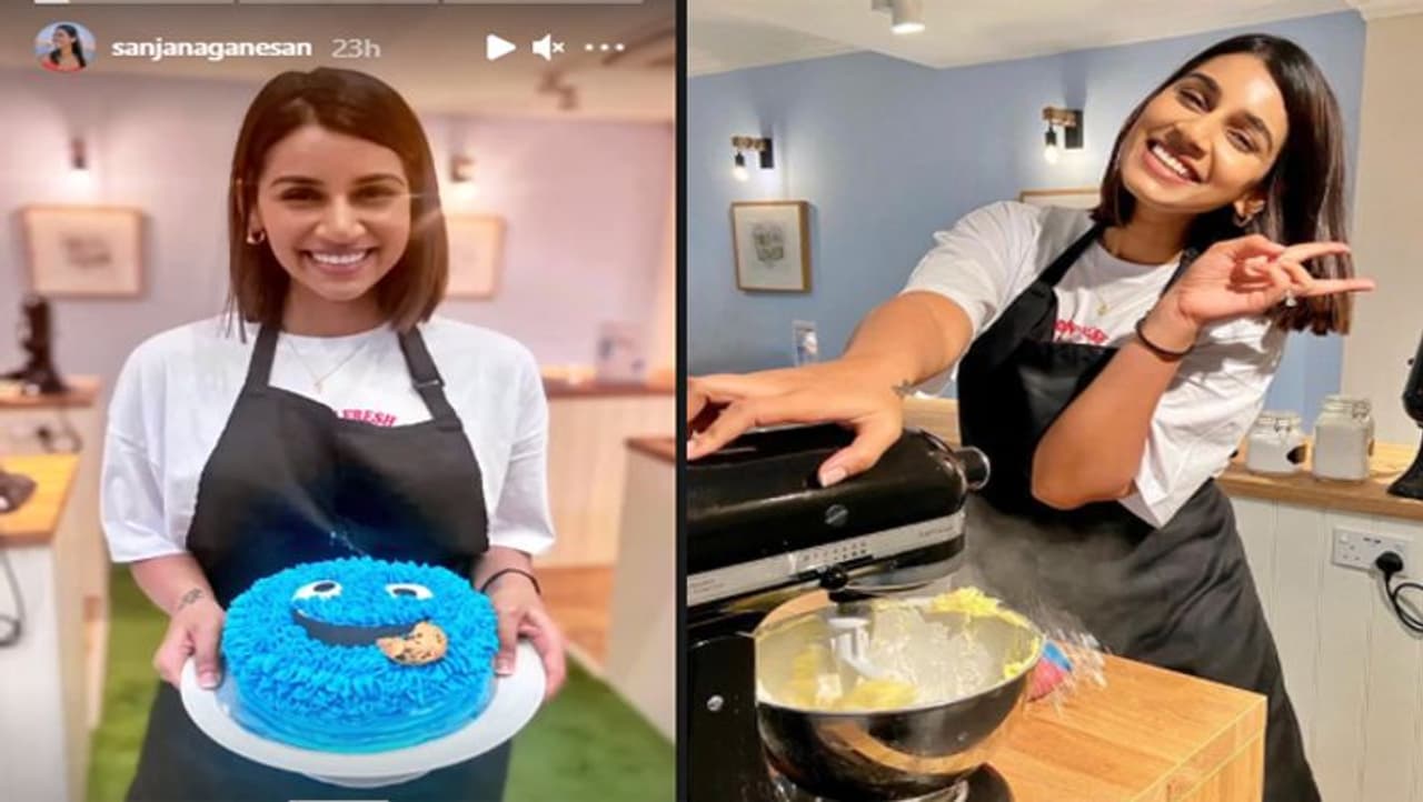 हाल ही में जसप्रीत बुमराह की वाइफ संजना गणेशन ने अपनी तस्वीर इंस्टाग्राम पर शेयर की है। जिसमें वह बेकिंग करती हुई नजर आ रही है और उन्होंने अपने केक के साथ एक फोटो शेयर की है जिसमें उन्होंने शानदार केक बनाया है।