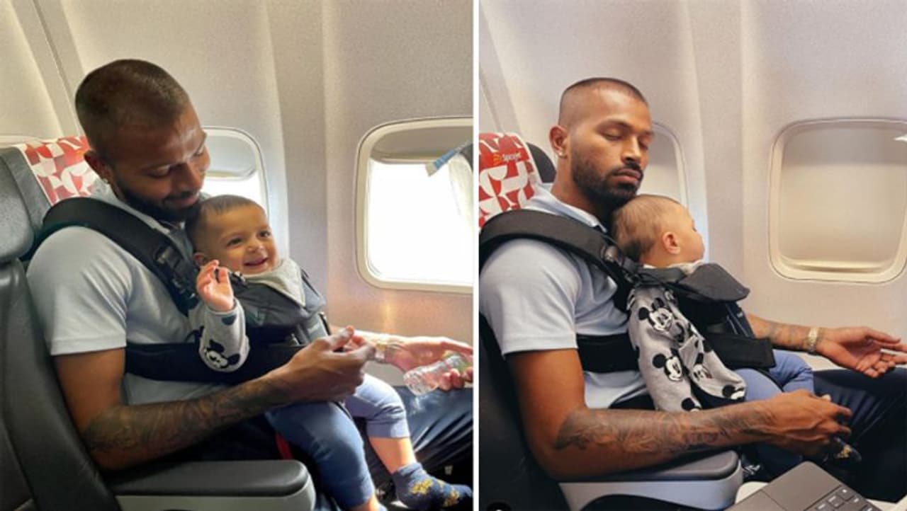 हार्दिक पांड्या ने अपने 7 महीने के बेटे अगस्त्य (agastya pandya) के साथ फ्लाइट में जाते हुए एक फोटो शेयर की है, जिसमें छोटू पंड्या पापा की गोद में बंदर की तरह चिपका हुआ नजर आ रहा हैं।