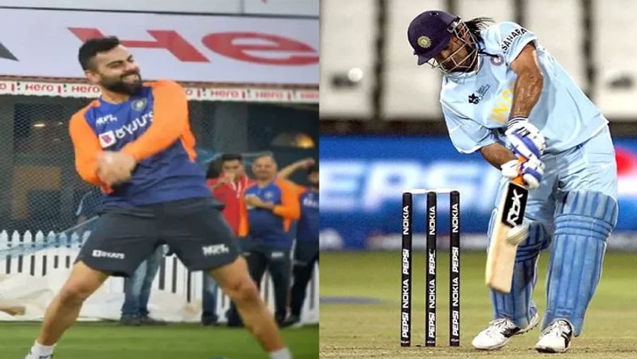 - धोनी की तरह हेलीकॉप्टर शॉट मारते दिखें विराट कोहली, मैच से पहले इस तरह प्रैक्टिस कर रहें खिलाड़ी