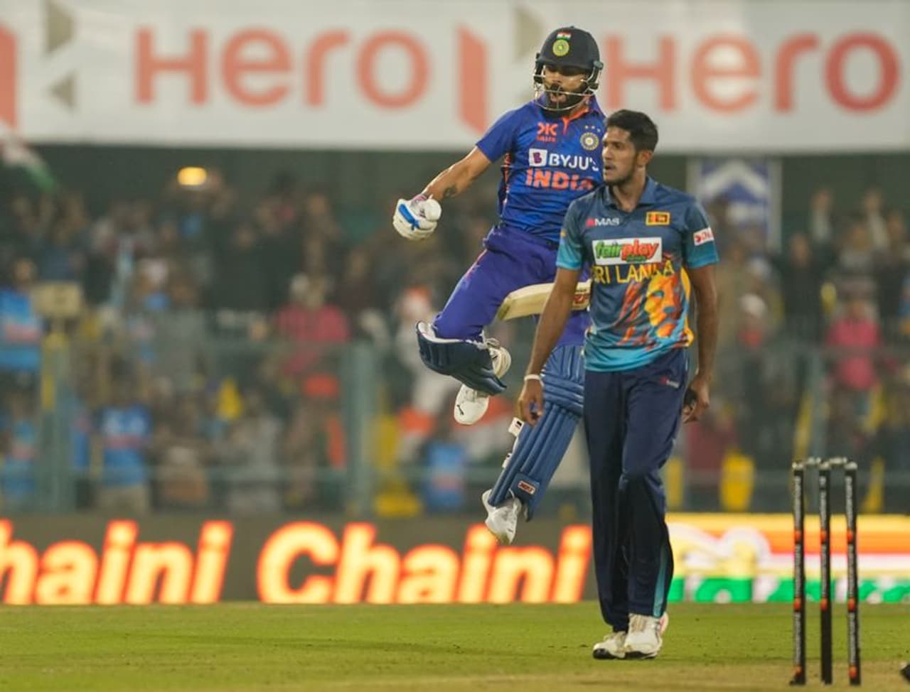 Special Moments Of Ind V/S Sl ODI. भारत और श्रीलंका के बीच खेला गया पहला वनडे मैच भारत ने बड़े अंतर 67 रनों से जीत लिया है। टीम इंडिया की इस जीत में पूर्व कप्तान विराट कोहली की शतकीय पारी तो रही ही साथ में रोहित शर्मा के 83 रन और शुभमन गिल के 70 रनों का बड़ा योगदान रहा। इसके बाद भारतीय गेंदबाज मोहम्मद सिराज ने शुरूआत में ही दो विकेट चटकाकर भारत को फ्रंट फुट पर कर दिया। इसके बाद उमरान मलिक ने भी 3 महत्वपूर्ण विकेट झटककर मैच भारत की झोली में डाल दिया। भारतीय गेंदबाजों के उम्दा प्रदर्शन के दम पर ही भारत ने 373 रनों को सफलतापूर्वक डिफेंड किया और श्रीलंकाई टीम 306 रन ही बना सकी। भारत ने 3 मैचों की सीरीज में 1-0 से बढ़त बना ली है। अगला मुकाबला कोलकाता के ईडेन गार्डन में 12 जवनरी को खेला जाएगा। आइए जानते हैं भारत-श्रीलंका मैच के दौरान 5 स्पेशल मोमेंट्स क्या रहे...